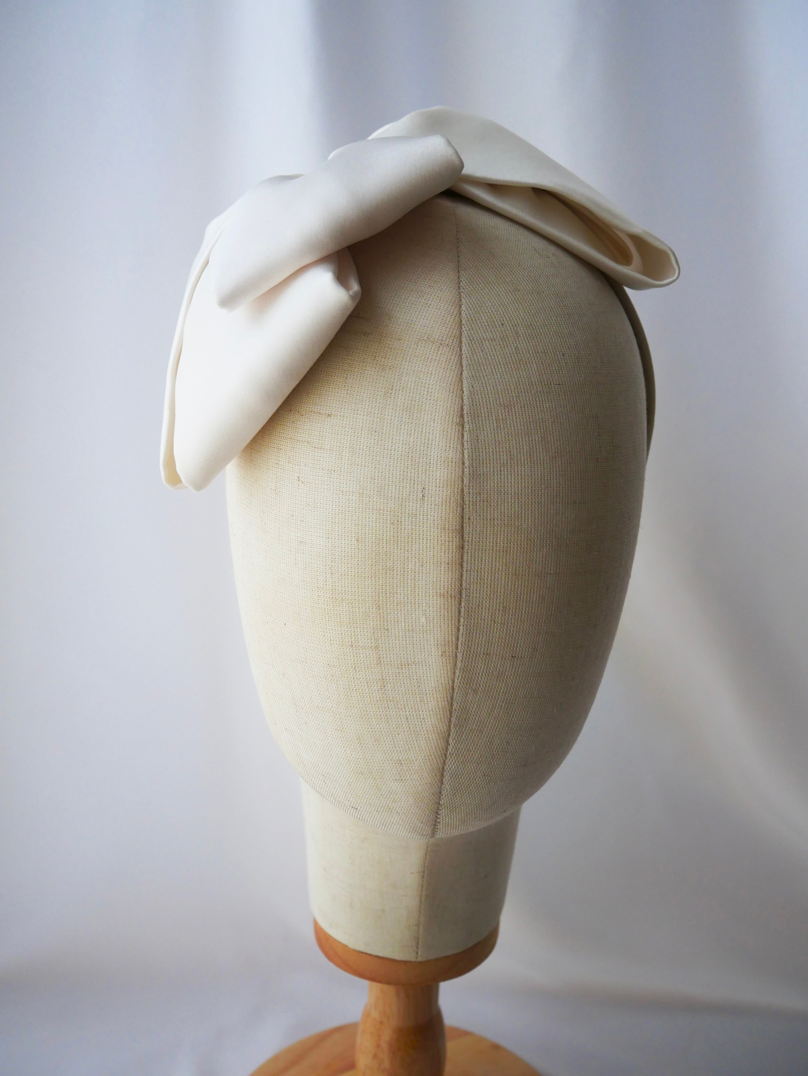 立体感を持たせるために生地を折り重ね、リボンのようにデザインされたカチューシャは可愛らしさと華やかさを引き立て、大人可愛いウエディングを演出してくれます。