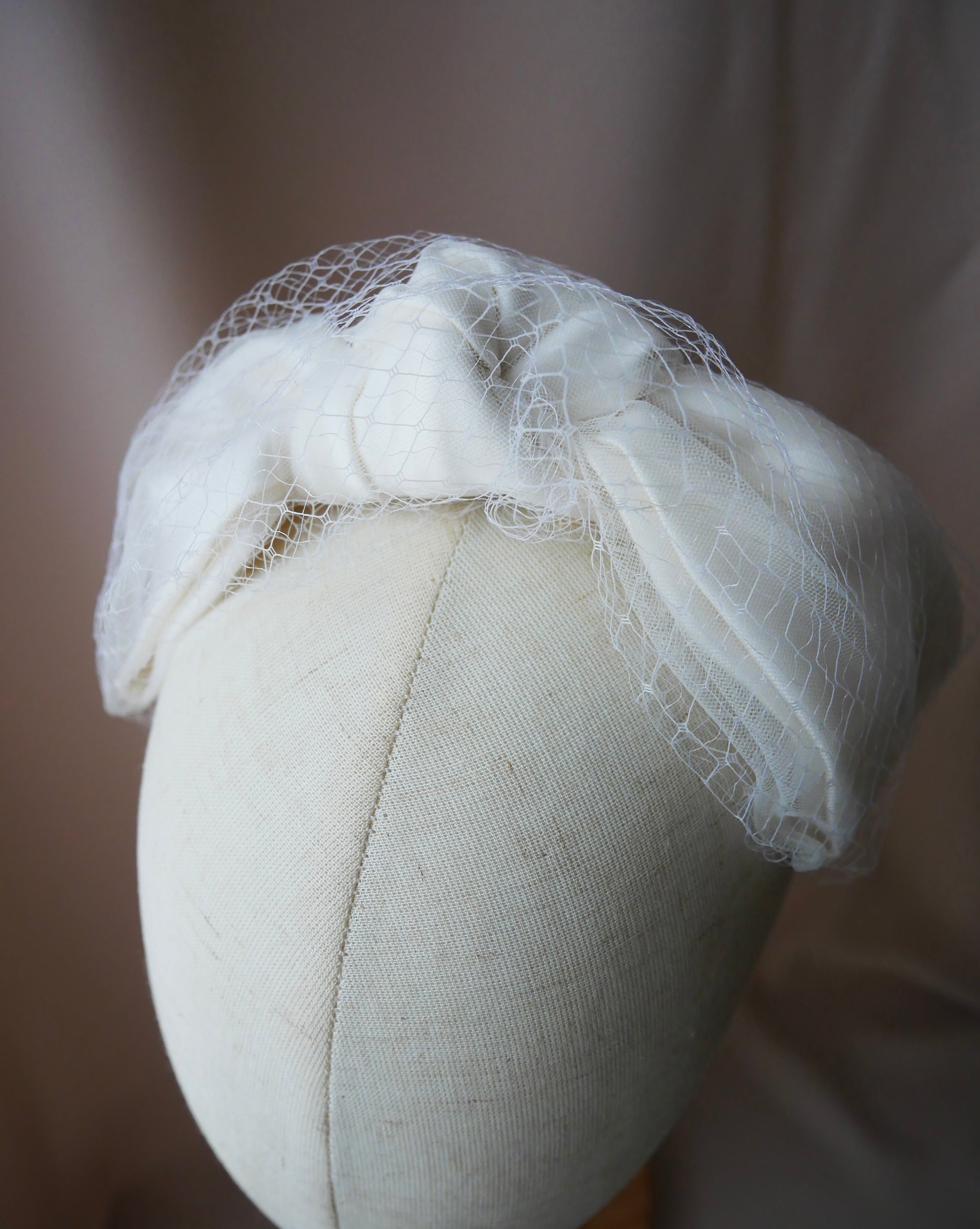 お顔に少しだけかかるベールはレトロな雰囲気で女性らしさを引き立ててくれます。